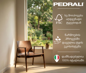 • Pedrali-ს ავეჯი გათვლილია კომერციულ დატვირთვაზე (რესტორნები, აეროპორტები). სახლის პირობებში მისი ცვეთა ნულოვანია.