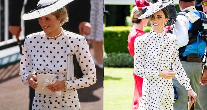 Royal Ascot-ის დოღზე, რომელიც სამეფო ოჯახის ორგანიზებით ტარდება, ქეითმა დედამთილს პატივი კოპლებიანი კაბით მიაგო. დაიანას 1988 წლის ფოტო სწორედ ამ ღონისძიებაზეა გადაღებული. კაბის 2022 წლის ვერსიას საყელო დაემატა, თუმცა მაინც ადვილად საცნობი დარჩა.