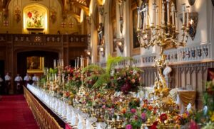 წვეულება უინძორის სასახლის წმინდა გიორგის დარბაზში გაიმართა. ეს იყო სანახაობა ინტერიერში, რომელიც ერთდროულად შუასაუკუნეების ნადიმებსაც მოგვაგონებდა და ჰარი პოტერის ფილმებსაც.