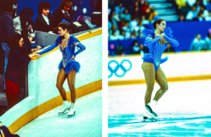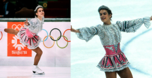 გერმანელმა მოციგურავემ ოლიმპიურ თამაშებზე ზედიზედ, ორჯერ გაიმარჯვა. 1984 წელს სარაევოში მან პირველი ოქრო მოიპოვა. კატარინას ბრჭყვიალა სამოსი ვარდისფერი ქვედაბოლოთი, მაქმანებიანი ბლუზითა და ტიარით სრულად შეეფერებოდა საზეიმო განწყობას.
