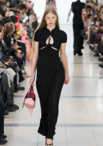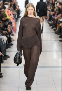 ვივიენი პოდიუმზე ორჯერ გამოვიდა – ყავისფერ, ნახევრად გამჭვირვალე ორეულსა და ელეგანტურ შავ კაბაში.