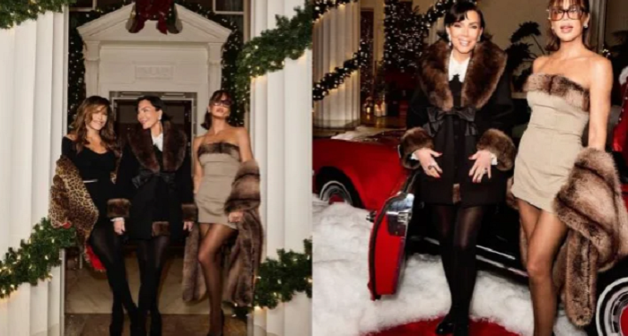 კარდაშიანსაც და ჯენერსაც ბეწვით გაფორმებული სადღესასწაულო სამოსი ეცვათ. კიმმა ნაცრისფერი მოკლე კაბა აირჩია ბეწვის მოსასხამით, კრისმა კი უპირატესობა შავ პალტოს მიანიჭა.