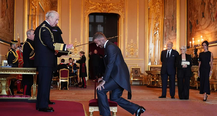 მეფე ჩარლზ III-მ ინგლისის ნაკრების ყოფილი კაპიტანი, დევიდ ბექჰემი ფეხბურთისა და ბრიტანული საზოგადოების წინაშე გაწეული დამსახურებისთვის ბერკშირში გამართულ ცერემონიაზე რაინდად აკურთხა.