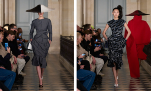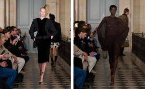 ჩვენება დაასრულა მოდელმა ასიმეტრიულ შავ კაბაში, რომლის გულამოჭრილი ნაწილი მკერდს აშიშვლებდა. გოგონა მას შამპანურის ბოკალიანი ხელით იფარავდა – ზუსტად ისე, როგორც პაბლო პიკასოს ქალიშვილი, პალომა პიკასო, ჰელმუტ ნიუტონის 1973 წლის ცნობილ ფოტოზე.